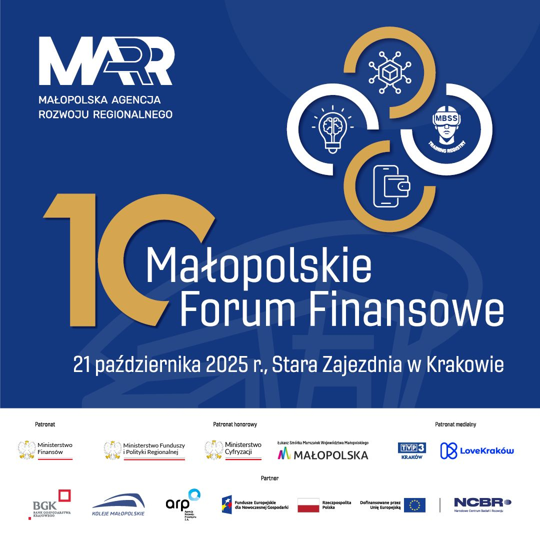 Serdecznie zapraszamy na Małopolskie Forum Finansowe - cykliczne, jednodniowe wydarzenie o charakterze edukacyjno- informacyjnym, które od lat łączy biznes, innowacje i wskazuje źródła realnego wsparcia dla firm. Forum odbędzie się 21 października 2025 r. w Starej Zajezdni w Krakowie.