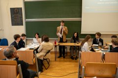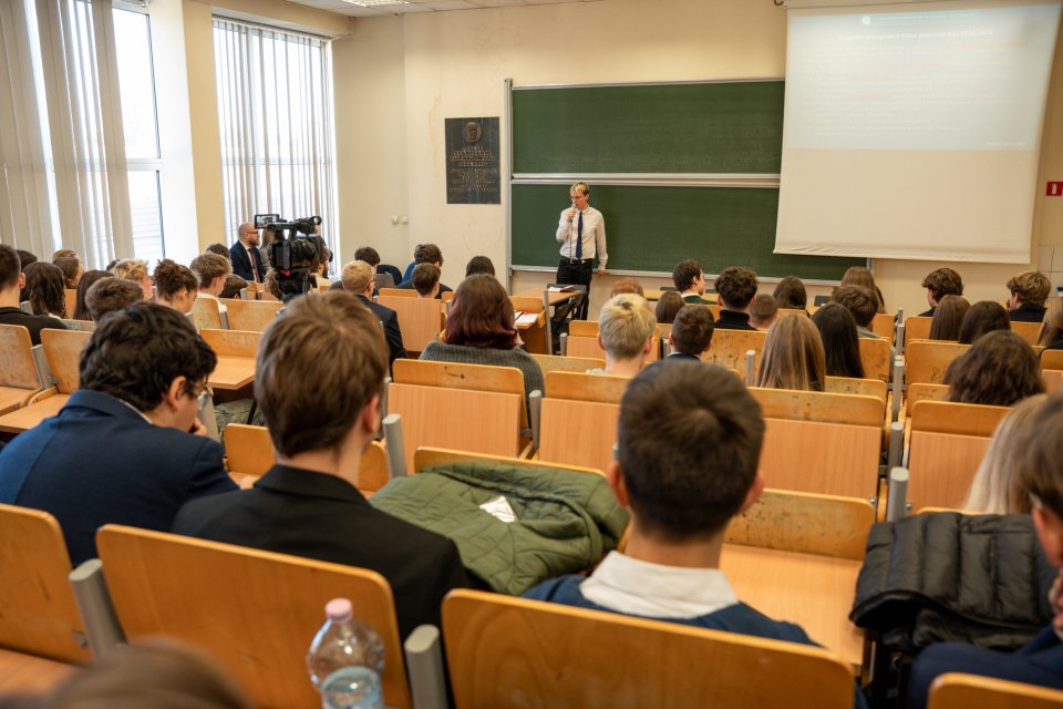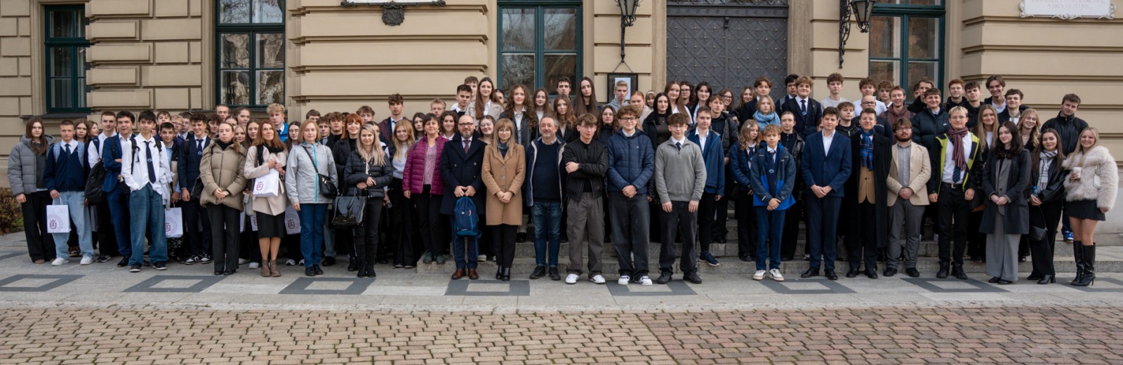 Zgromadzonych gości powitali Koordynatorka współpracy z LO w Piekarach – dr Justyna Eska-Mikołajewska z Katedry Studiów Politycznych – oraz Dyrektor Instytutu, dr hab. Przemysław Kisiel, prof. UEK. W imieniu szkoły głos zabrał również mgr Dominik Karcz, wicedyrektor LO i koordynator współpracy ze strony liceum.