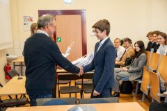 Jednym z najważniejszych momentów uroczystości było wręczenie indeksów uczniom nowego rocznika klasy patronackiej. Aktu tego dokonali prof. Przemysław Kisiel oraz wychowawczyni klasy 1D, pani Anna Nogieć.
