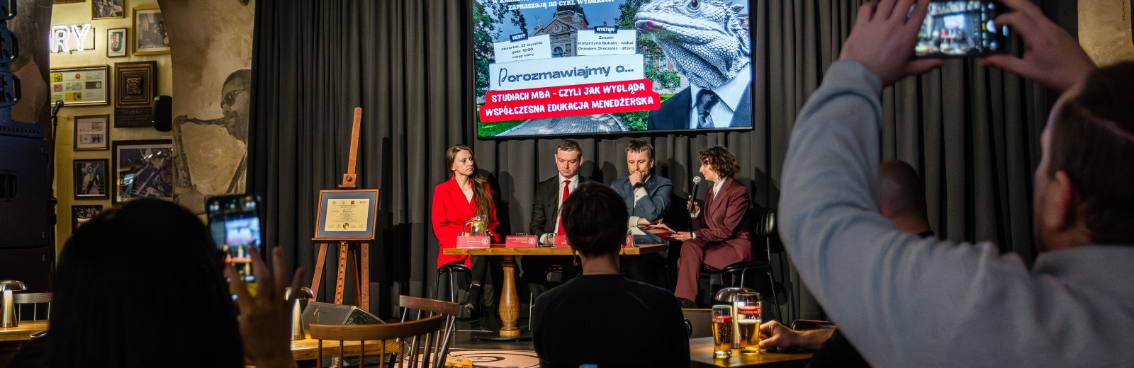 Prestiż studiów MBA, znaczenie akredytacji, regulacje prawne oraz rola edukacji menedżerskiej w kształtowaniu etycznego przywództwa były głównymi tematami debaty „Porozmawiajmy o studiach MBA – czyli jak wygląda współczesna edukacja menedżerska”, która odbyła się 22 stycznia w Klubie pod Jaszczurami. W dyskusji udział wzięli przedstawiciele Krakowskiej Szkoły Biznesu UEK oraz absolwentka programu Executive MBA.
