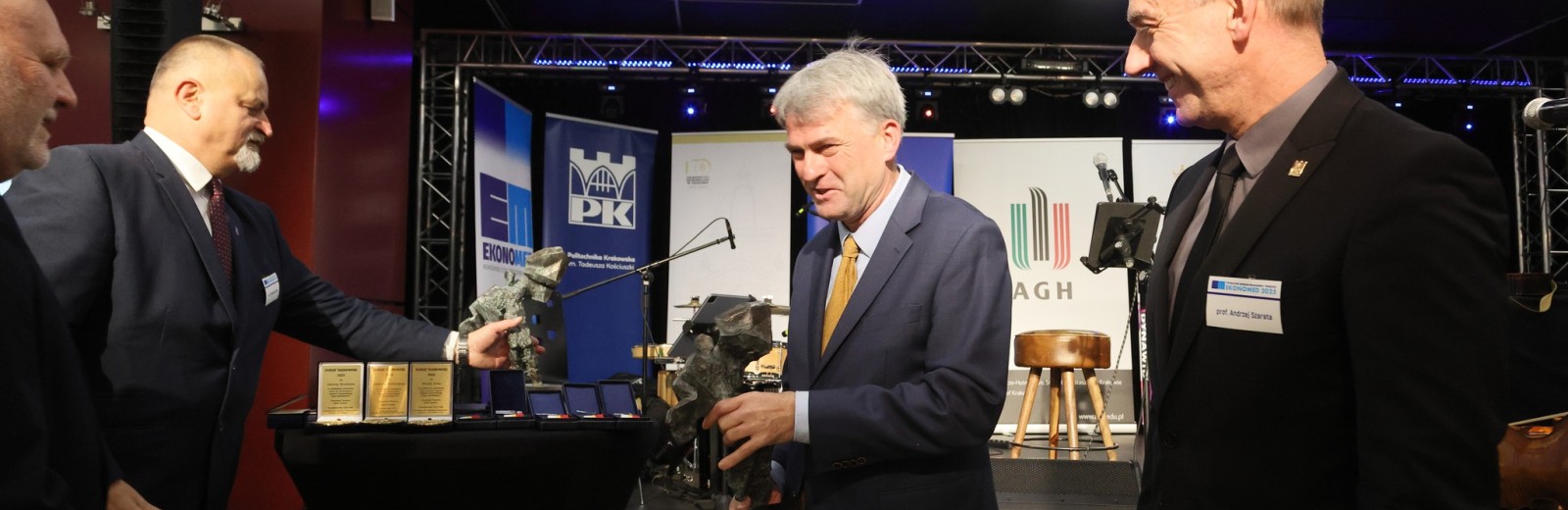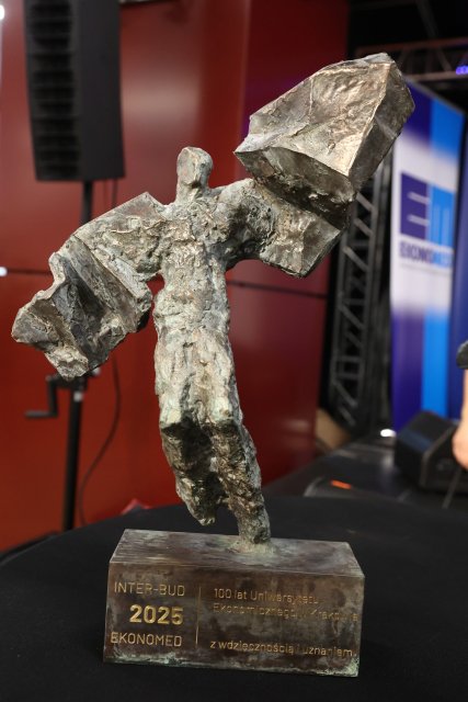 Podczas IX Krakowskiego Spotkania Ekonomistów i Medyków „Ekonomed” 2025, 22 października 2025 r. nasza Uczelnia została uhonorowana z okazji jubileuszu 100-lecia istnienia UEK. Zaprojektowaną specjalnie na tę okazję statuetkę autorstwa dr Dobiesława Gały, prodziekana Wydziału Rzeźby ASP odebrał w imieniu JM Rektora UEK, prof. dr hab. Łukasz Mamica, Prorektor ds. Współpracy i Projektów.
