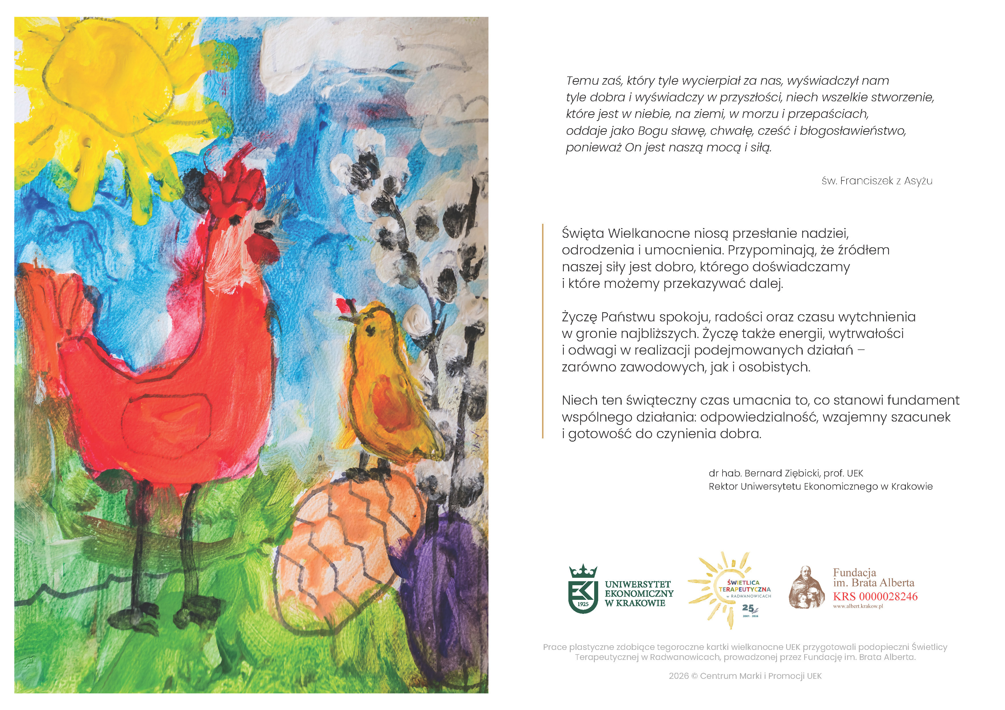 Życzenia JM Rektora Uniwersytetu Ekonomicznego w Krakowie dr. hab. Bernarda Ziębickiego, prof. UEK z okazji Świąt Wielkanocnych.