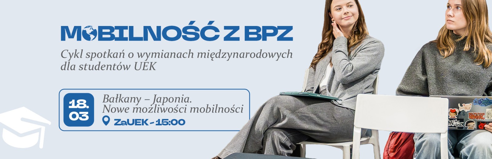 Biuro Programów Zagranicznych zaprasza studentów na kolejne spotkanie z cyklu „Mobilność z BPZ”, które odbędzie się 18 marca o godz. 15:00 w klubie studenckim ZaUEK. Tym razem wydarzenie zatytułowane „Bałkany – Japonia: nowe możliwości mobilności” poświęcone będzie dwóm programom wymiany międzynarodowej: STEP oraz CEEPUS.