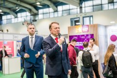 Punktualnie o 11:00 wystawców oraz uczestników oficjalnie powitał JM Rektor dr hab. Bernard Ziębicki, prof. UEK. Zachęcił uczestników do odkrywania ofert przygotowanych przez zgromadzone firmy i życzył znalezienia na targach wymarzonej pracy czy praktyk.
