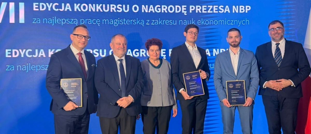 Z ogromną przyjemnością informujemy o sukcesach Absolwentów Uniwersytetu Ekonomicznego w Krakowie w konkursach Narodowego Banku Polskiego. W gronie laureatów IX edycji Konkursu o Nagrodę Prezesa NBP za najlepszą pracę doktorską i habilitacyjną z zakresu nauk ekonomicznych znalazł się dr Wojciech Haza, natomiast w XVII edycji Konkursu o Nagrodę Prezesa NBP za najlepszą pracę magisterską z zakresu nauk ekonomicznych nagrodę i wyróżnienie uzyskali mgr Radosław Racięga oraz mgr Mateusz Pieróg. Laureaci odebrali nagrody i wyróżnienia z rąk Wiceprezesa NBP prof. Pawła Szałamachy podczas uroczystej gali, która odbyła się 19 grudnia 2025 roku w siedzibie NBP.