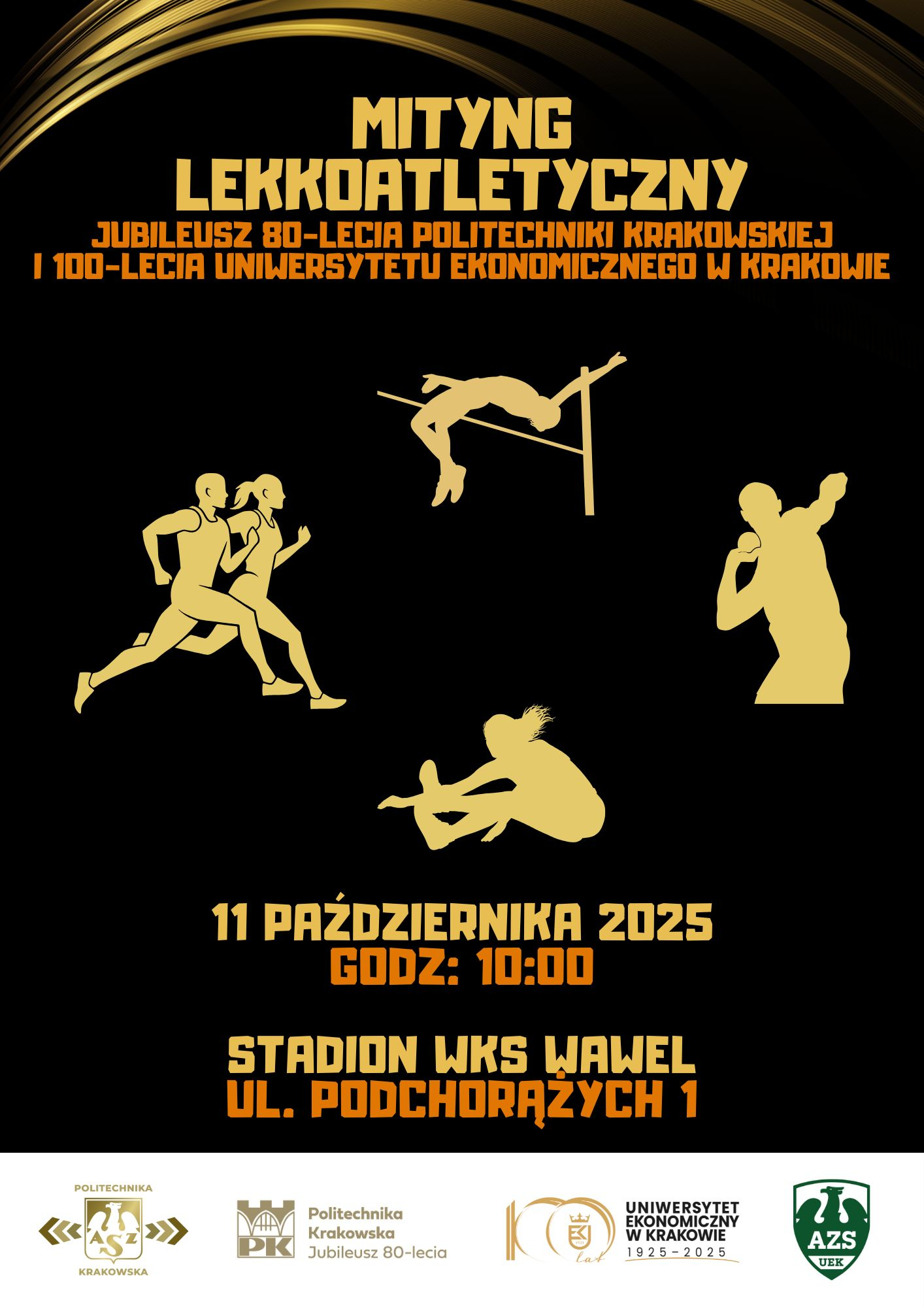 Już 11 października 2025 r. Kraków stanie się areną wyjątkowego wydarzenia sportowego. Na stadionie WKS Wawel o godz. 10:00 rozpocznie się V Mityng Lekkoatletyczny, który w tym roku nabiera szczególnego wymiaru – odbywa się bowiem w ramach jubileuszu 80-lecia Politechniki Krakowskiej oraz 100-lecia Uniwersytetu Ekonomicznego w Krakowie.