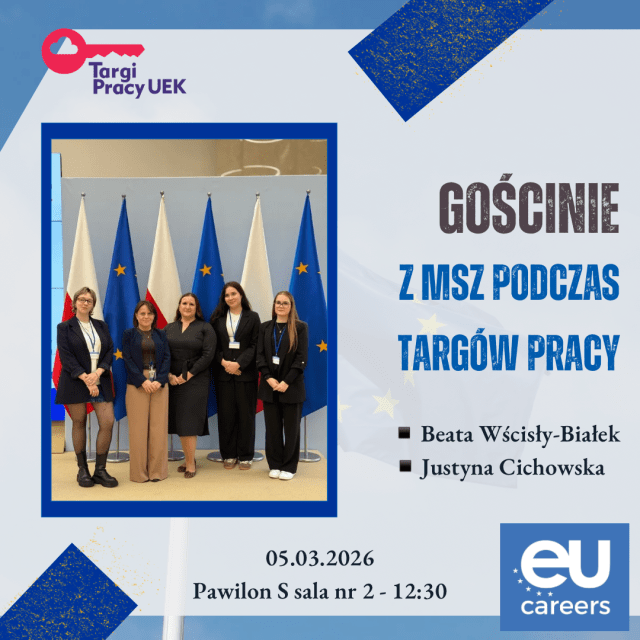 W ramach nadchodzących Targów Pracy UEK Akademickie Centrum Kariery zaprasza na wyjątkowe spotkanie z Gościniami z Ministerstwa Spraw Zagranicznych, które opowiedzą o aktualnym konkursie na stanowiska administracyjne w instytucjach UE.