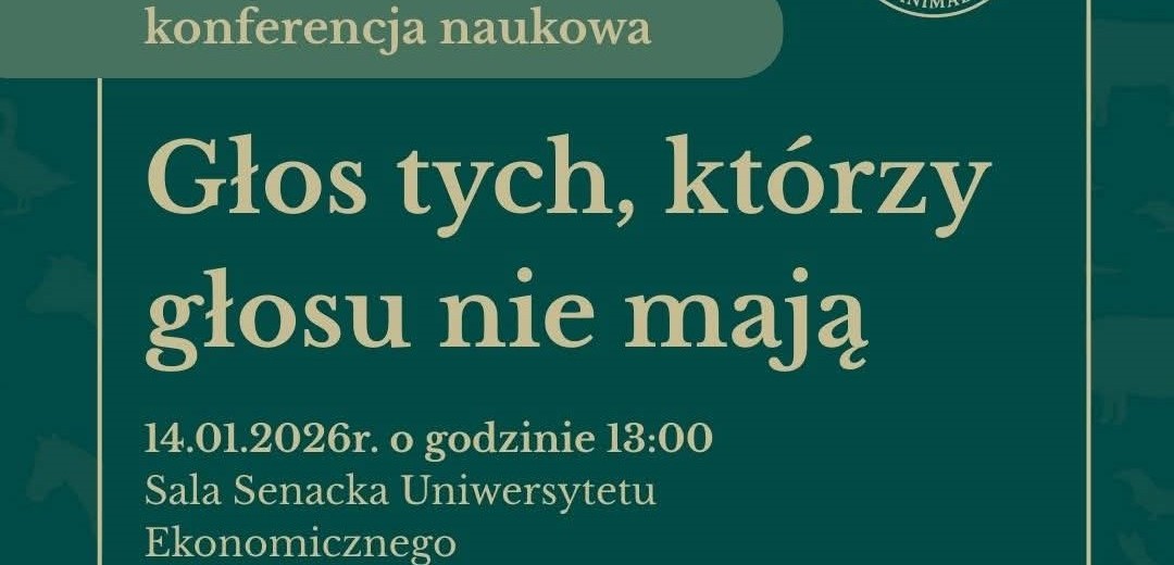 W imieniu Koła Naukowego lus Animalium zapraszamy na konferencję naukową „Głos tych, którzy głosu nie mają”, która odbędzie się 14 stycznia o godzinie 13.00. w Sali Senackiej (Budynek Główny).