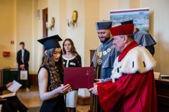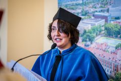 – Dziękuję Wam drodzy Absolwenci za to, że uczyniliście naszą Uczelnię miejscem pełnym pasji i miejscem naszych wspólnych osiągnięć. Zachęcam Was, do kontynuowania relacji z naszą Uczelnią. Mamy bardzo bogatą ofertę studiów drugiego stopnia, a także studiów podyplomowych. Prowadzimy kształcenie w Szkole Doktorskiej. Czekamy na Was, czekamy również na Wasze pomysły. Życzę Wam odwagi, by marzyć odważnie, determinacji, by te marzenia spełniać. Jednym słowem, drodzy Absolwenci, życzę Wam wspaniałych wykładów z życia – powiedziała Prorektor ds. Kształcenia i Studentów.
