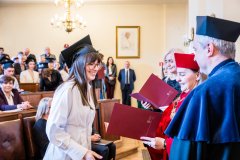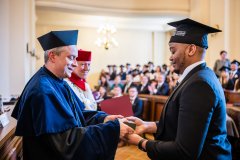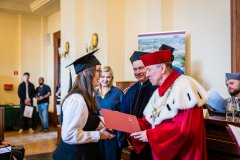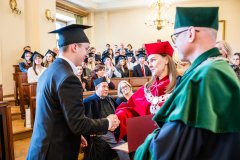 – Z ogromną radością witam Państwa na tej wyjątkowej uroczystości, święcie będącym zwieńczeniem lat pracy, wytrwałości i zaangażowania. Dzisiejszy dzień ma szczególny wymiar, ponieważ świętujecie go w obecności najbliższych, tych którzy towarzyszyli Wam w tej drodze, wspierali Was, motywowali, wierzyli w Was, nawet wtedy, gdy pojawiały się wątpliwości – rozpoczął JM Rektor.