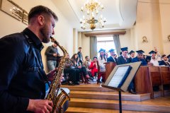 Uroczystość uświetnił występ artystyczny w wykonaniu Marka Pawełka (fortepian) oraz Arkadiusza Barana (saksofon) – absolwentów Akademii Muzycznej im. Krzysztofa Pendereckiego w Krakowie. Zwieńczeniem graduacji były wspólne zdjęcia Absolwentów z Władzami Uczelni, po których uczestnicy wydarzenia spotkali się na poczęstunku, celebrując ten wyjątkowy moment w gronie najbliższych.