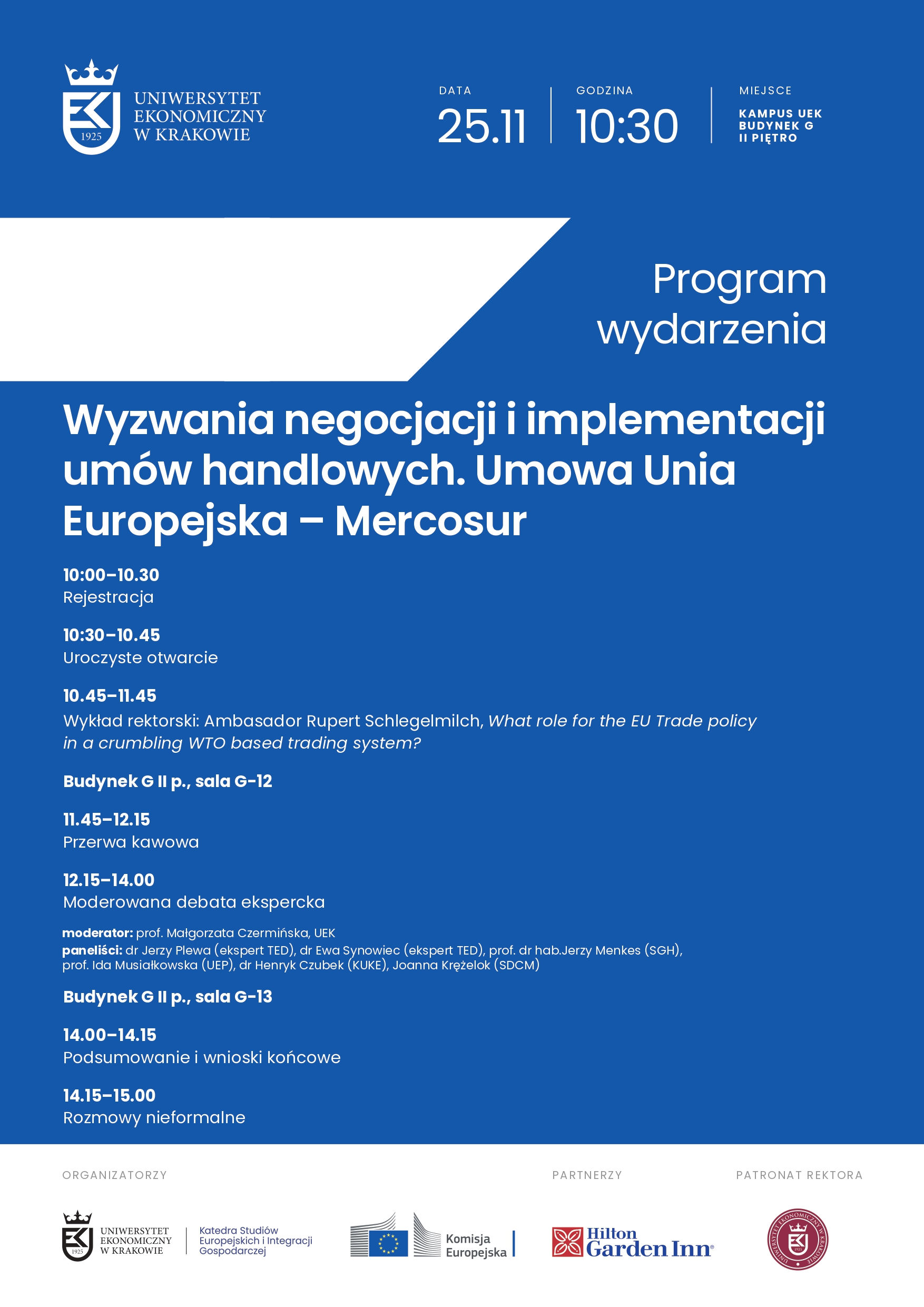 Katedra Studiów Europejskich i Integracji Gospodarczej UEK oraz Komisja Europejska Przedstawicielstwo w Polsce zapraszają na debatę, która odbędzie się 25 listopada br. o godzinie 10:30 w Pawilonie G.