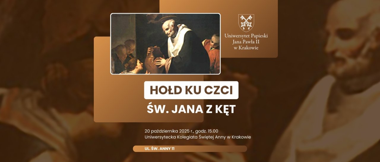 W poniedziałek 20 października 2025 r. o godz. 15:00 zostanie odprawiona Msza św. w intencji krakowskiego i małopolskiego środowiska akademickiego o zdrowie i błogosławieństwo Boże dla profesorów, pracowników, studentów i doktorantów w nowym roku akademickim 2025/2026, połączona z uroczystym złożeniem hołdu św. Janowi z Kęt.